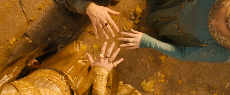 • Rory Kinnear memerankan “Tom Bombadil,” sosok misterius dalam karya Tolkien yang selalu bijaksana, sering kali mendorong para karakter lain untuk melihat sesuatu dengan lebih jernih dan membantu mereka memahami dunia luas di sekitar mereka. Dalam cerita, dia mengaku setua Bumi Tengah itu sendiri, memiliki kebijaksanaan yang jauh melampaui orang lain. Identik dengan semangat penjelajahan dan pencarian makna, Bombadil dikenal dengan sepatu bot kuning, mantel biru, topi berbulu, dan kecenderungannya berbicara penuh teka-teki dalam bentuk nyanyian.