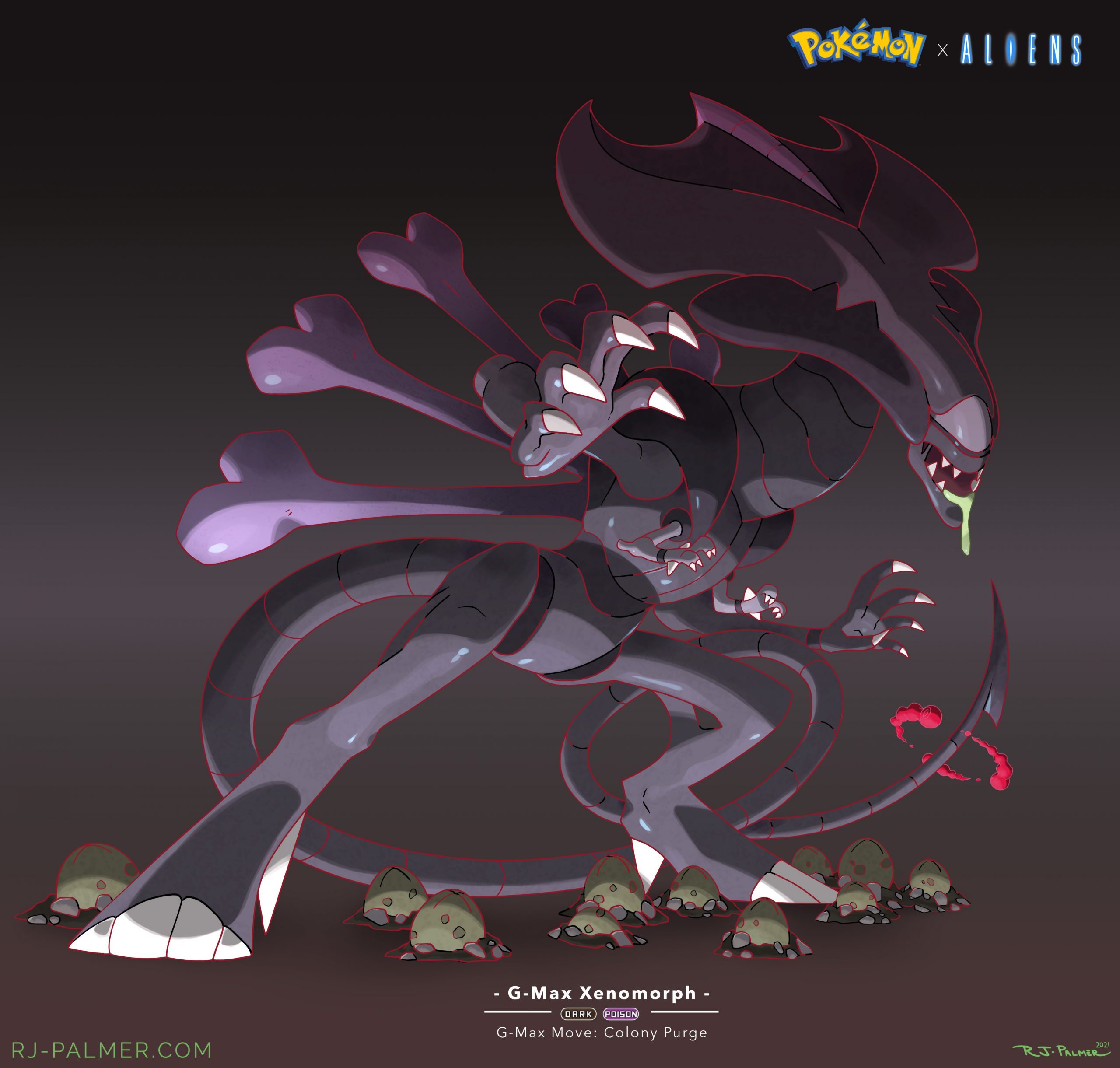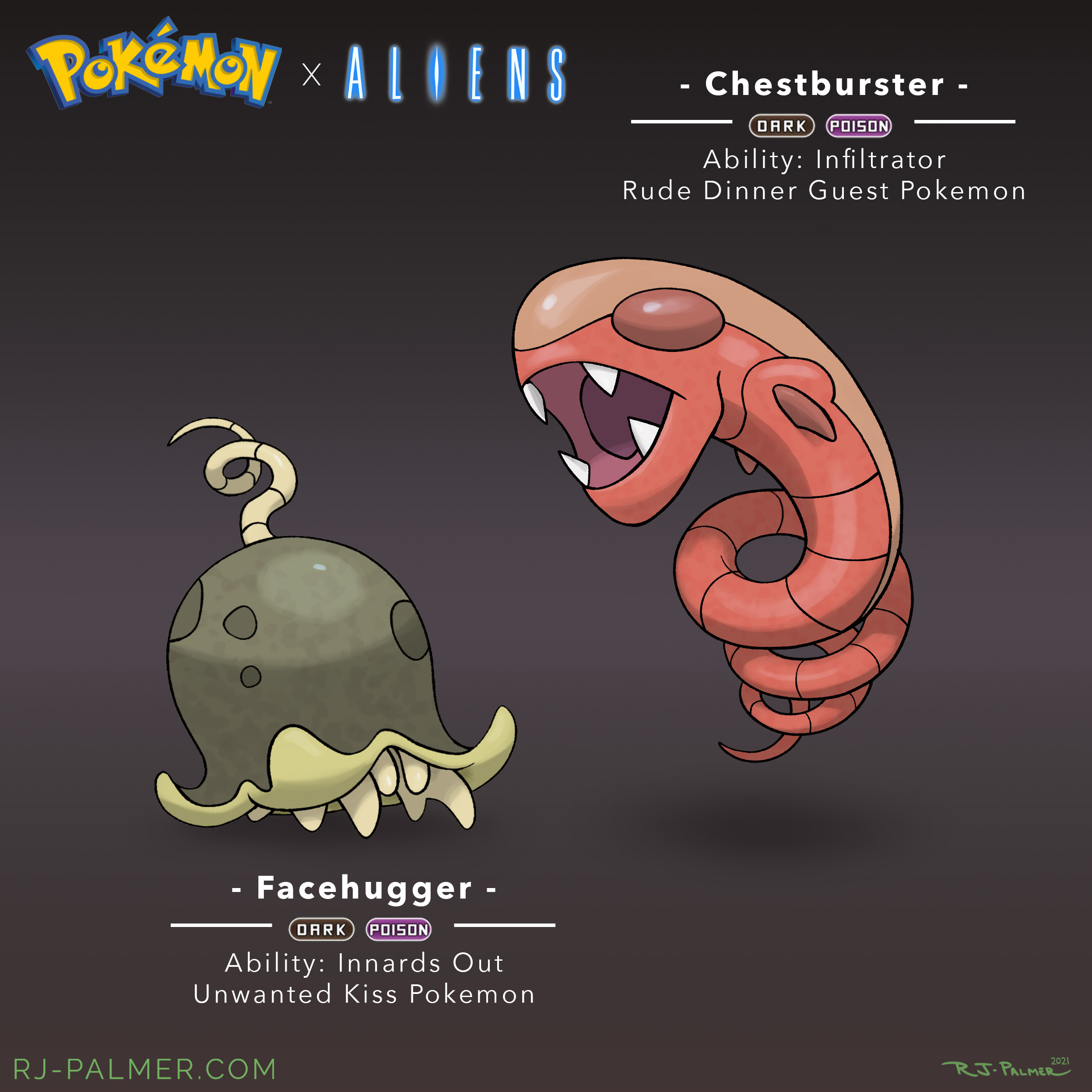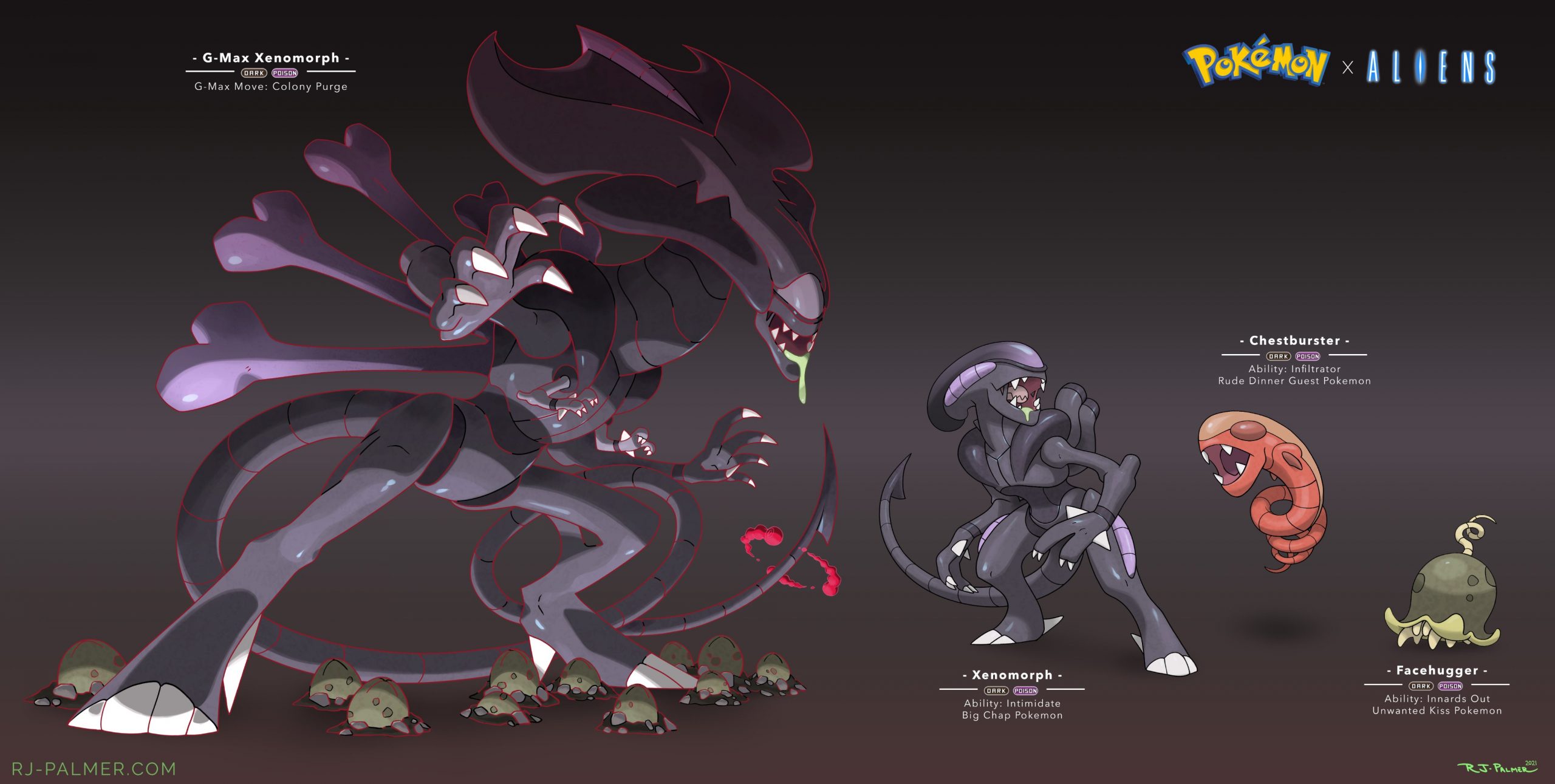 Palmer baru-baru ini men-tweet kreasi xenomorph-nya, menyatakan bahwa sebenarnya dia ingin mengunggahnya pada 26 April, juga dikenal sebagai Hari Alien, tetapi tidak bisa. Dia memposting empat tahap berbeda dari Xenomorph, mulai dari telur dan hibrida facehugger hingga Chestburster, Xenomorph umum, dan ratu. Mereka bahkan memiliki tipe yang konyol, karena Chestburster adalah “Rude Dinner Guest Pokémon” dan Xenormorph dewasa adalah “Big Chap Pokémon.”Mengingat pola evolusi Pokémon, transisinya terlihat cukup alami.
