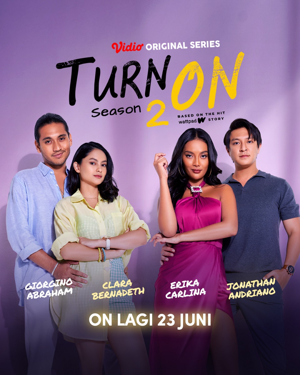 Buat kamu yang penasaran tentang kelanjutan hidup mereka semua, tungguin kelanjutannya di Turn On Season 2 ya! Episode pertama dari Vidio Original Series ini dapat penonton saksikan secara gratis mulai 23 Juni di platform Vidio. Sedangkan untuk episode selanjutnya, penonton diharuskan untuk berlangganan paket platinum dengan harga mulai dari Rp. 19.000 saja (khusus bagi para pengguna baru dan pengguna yang sedang tidak memiliki paket aktif “Platinum” maupun “Diamond”) atau paket Diamond (EPL + Platinum) mulai dari Rp 59,000.