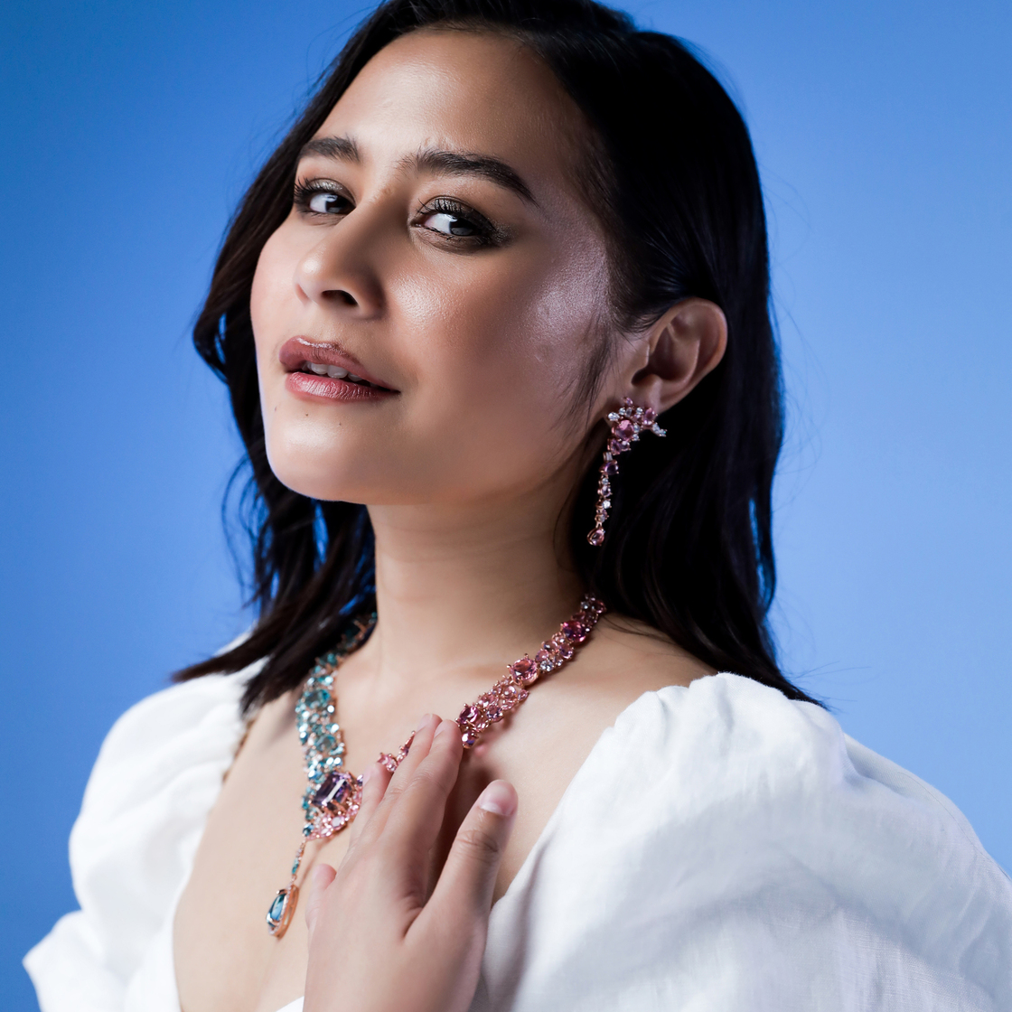 Terinspirasi oleh karakter Disney ikonik dari “The Little Mermaid”, Ariel, Prilly Latuconsina menuangkan imajinasinya ke dalam sepasang kalung dan anting yang mempesona, yang warnanya diambil dari warna sirip Ariel, yaitu sentuhan biru dan merah muda. Selain itu, sebagai ekspresi cintanya untuk lautan, pantai terindah di Indonesia yakni Pink Beach menjadi inspirasi Prilly dalam memilih warna untuk koleksi aksesorisnya.