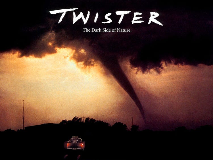 Film Twister pertama diarahkan oleh sutradara Speed, Jan De Bont, dengan Steven Spielberg (Jaws) sebagai eksekutif produsernya dengan naskah yang ditulis bersama oleh Anne-Marie Martin (Prom Night) dan Michael Crichton.