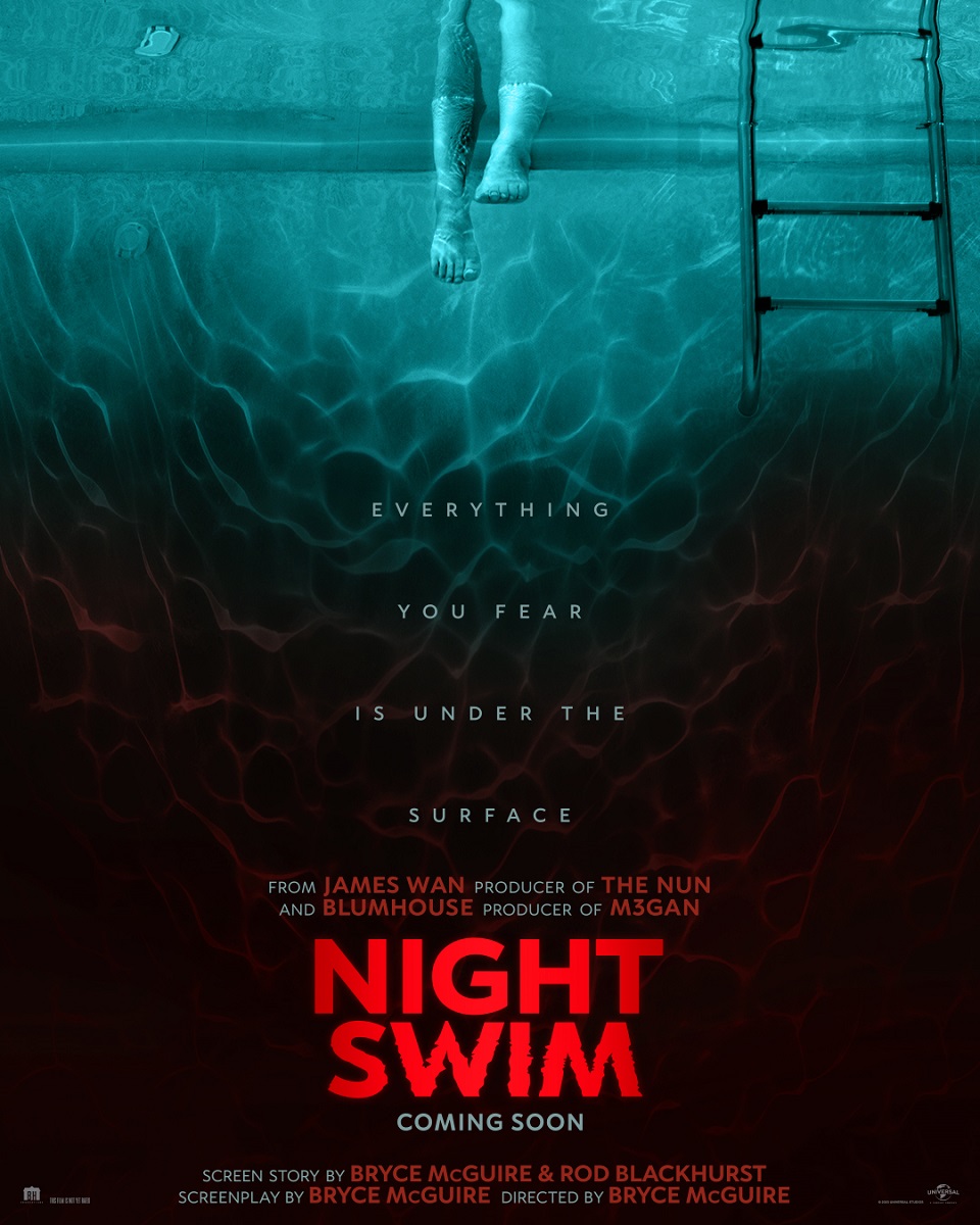 Universal Pictures telah merilis trailer dari film Night Swim yang dibintangi oleh Amélie Hoeferle, Wyatt Russell, Kerry Condon, dan Gavin Warren. Film ini diangkat dari film pendek tahun 2014 karya Rod Blackhurst dan Bryce McGuire (yang juga merupakan sutradara Night Swim). Keadaan menjadi semakin menyeramkan dan meresahkan ketika Hoeferle, yang berperan sebagai seorang remaja bernama Izzy, tersedot kembali ke dalam kolam renang di rumah baru mereka saat mereka sedang berenang di malam hari yang tenang, tepat setelah temannya menyuruhnya menutup mata dan menyelinap keluar dari kolam renang untuk memberikan kejutan.
