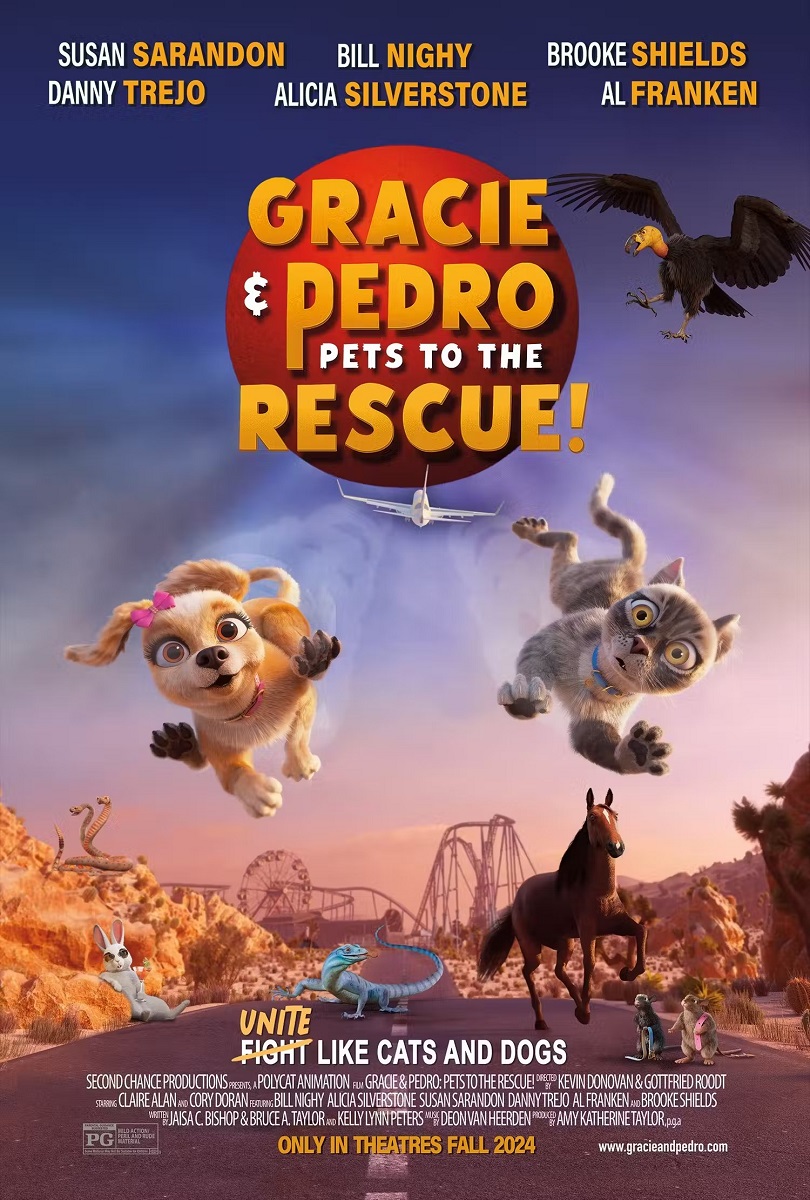 Kucing dan anjing mungkin musuh bebuyutan, tapi mereka harus mengesampingkan perbedaan mereka demi kebaikan satu sama lain dalam film baru yang ramah keluarga, Gracie & Pedro: Pets to the Rescue. Film yang akan tayang di bioskop pada 18 Oktober ini mengisahkan tentang seekor anjing dan kucing bernama Gracie (Claire Alan) dan Pedro (Cory Doran), yang akan melakukan perjalanan lintas negara bersama keluarga mereka yang penuh kasih. Namun, ketika mereka terpisah sebelum penerbangan, mereka terdampar di wilayah asing dengan karakter penuh warna yang tidak selalu bisa dipercaya. Satu-satunya harapan mereka adalah bekerja sama untuk menemukan jalan pulang. Menjelang perilisannya, sebuah trailer resmi dirilis untuk menggoda cobaan apa yang menanti keduanya dalam perjalanan berbahaya mereka.
