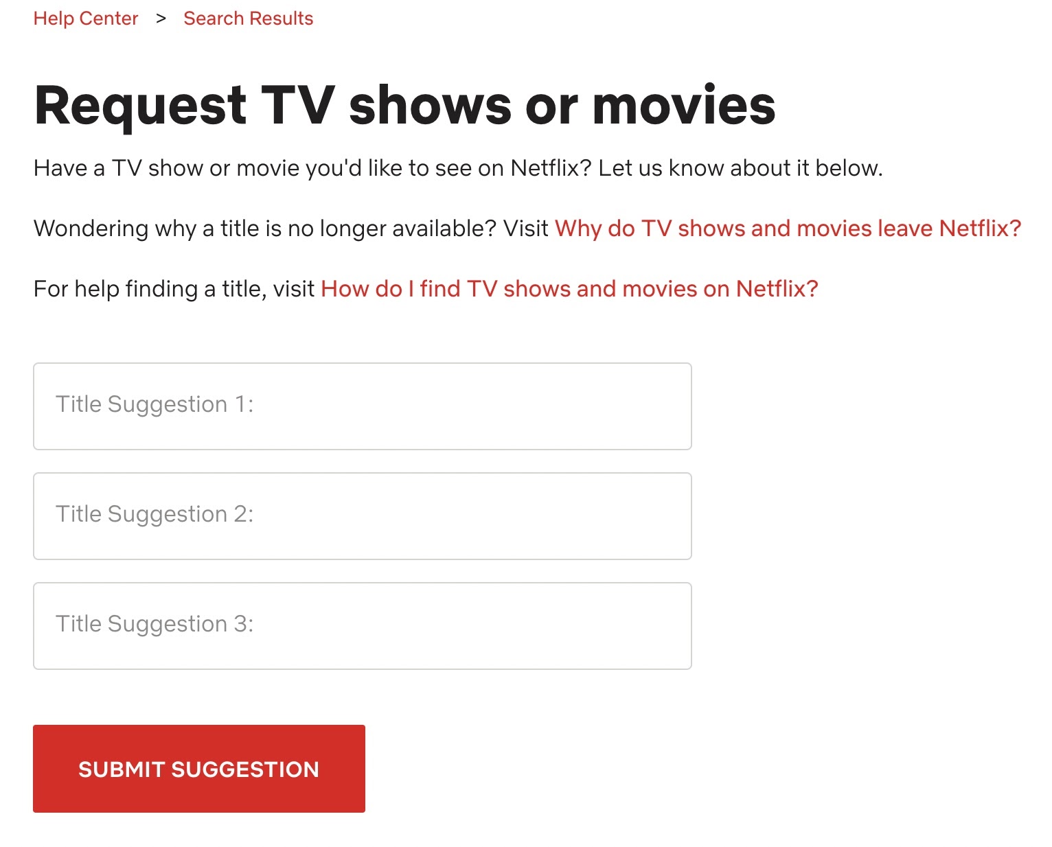 Selama ini Netflix banyak memberikan rekomendasi tayangan kepada Anda, tapi tahukah jika Anda juga dapat membalasnya? Anda dapat merekomendasikan serial atau film ke Netflix untuk ditambahkan di daftar tayangan dengan mengunjungi tautan ini. Jika Anda cukup sering menonton Netflix, maka ada kemungkinan Anda melewatkan suatu film atau serial di luar sana – jadi ini adalah kesempatan baik untuk memberi tahu Netflix mengenai tayangan yang ingin Anda tonton!
