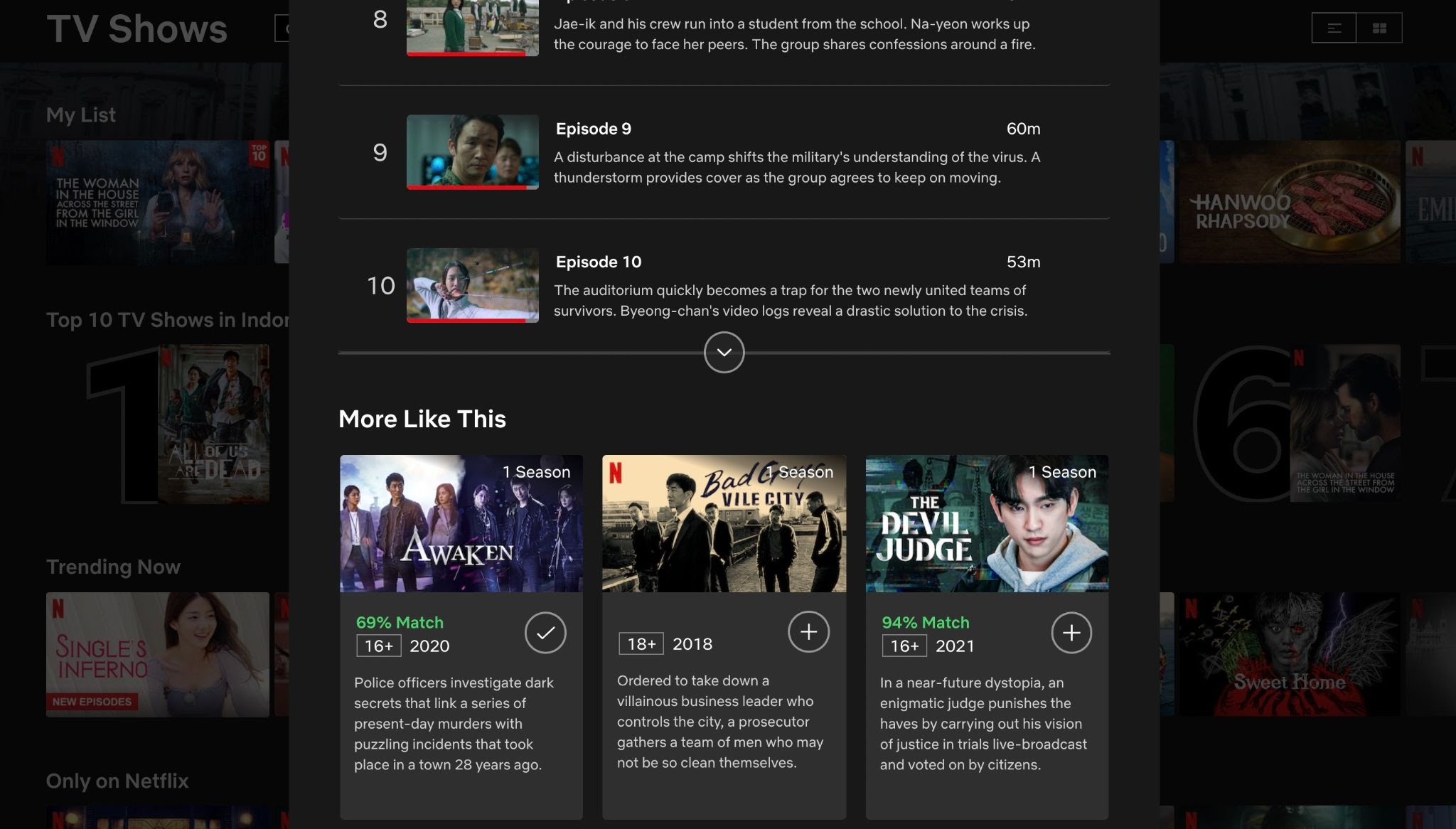 Jika Anda menyukai sebuah serial atau film, Anda dapat melihat tayangan serupa di bagian bawah halaman serial atau film tersebut. Ini adalah cara mudah untuk menemukan daftar judul yang mungkin menarik bagi Anda.