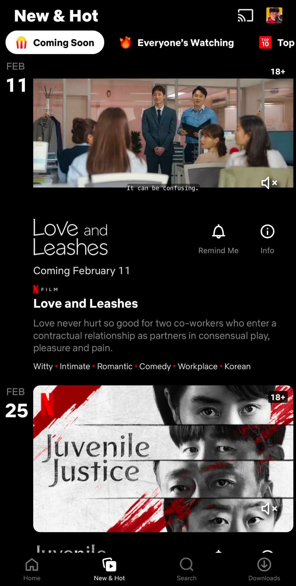 Pada aplikasi seluler, ada tab bertanda New & Hot, yang merupakan sumber terpercaya untuk melihat judul-judul yang segera tayang di Netflix. Di sini Anda dapat menonton cuplikan dan juga membaca sinopsisnya. Bukan hanya itu, jika Anda menantikan suatu tayangan khusus, Anda dapat klik ikon bel sebagai pengingat, sehingga Anda akan mendapatkan notifikasi saat film atau serial tersebut sudah tayang di Netflix! Dengan begitu Anda tidak akan pernah melewatkan tayangan seru berikutnya.