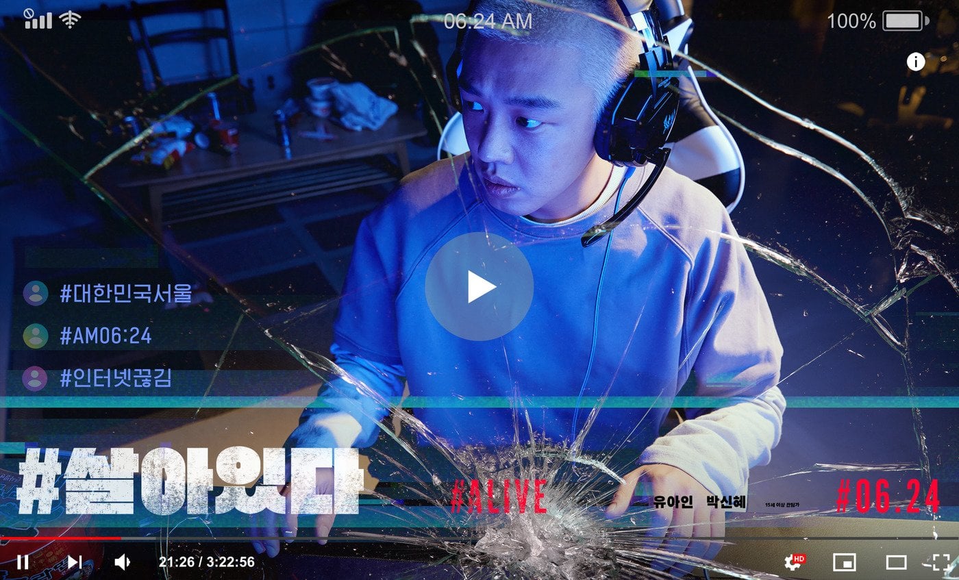 #ALIVE adalah sebuah film “survival thriller” tentang wabah misterius yang tiba-tiba menyebar ke seluruh Seoul dan dengan cepat merebak di luar kendali, menjebak orang-orang yang selamat sendirian di dalam apartemen mereka tanpa akses ke data seluler, Wi-Fi, SMS, atau panggilan telepon. Yoo Ah In dan Park Shin Hye akan berperan sebagai Joon Woo dan Yoo Bin, dua korban yang terisolasi di tengah kota yang berbahaya.